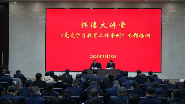 2月28日上午,富平县举办“怀德大讲堂《党史学习教育工作条例》专题培训”,邀请省委副秘书长、省委党史研究室主任任宗哲进行专题授课。全体县级领导,各镇(街道)、各部门主要负责同志共计160余人参加。会议由县委副书记亢鹏主持。
