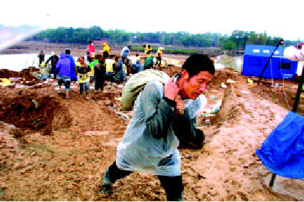 2003年10月4日 渭南干部群众迎战渭河五号洪峰。