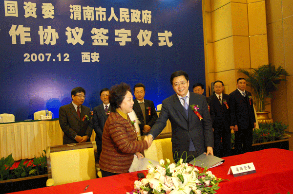 2007年12月7日 陕西省国资委与渭南市政府在西安签订战略合作协议,宣布建立战略合作关系,加速推进区域经济发展,做大做强国有企业。双方共签署一期重点项目32个,总投资368.6亿元。同时,大会上还签署6个重大项目协议,项目总投资180亿元。