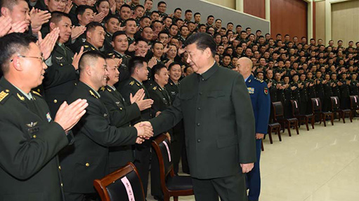 12月13日,中共中央总书记、国家主席、中央军委主席习近平到第71集团军视察。这是习近平亲切接见集团军机关全体干部和所属部队团以上干部。新华社记者 李 刚摄